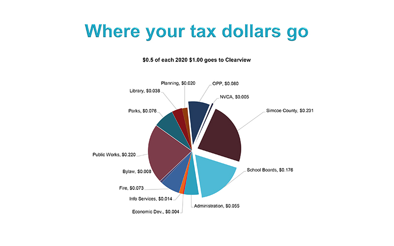 Clearview Treasurer Kelly McDonald outlined plans for capital and operating budgets which have been in development since September. The proposed 2020 budget assumes total revenue of $30,230,900 with 56 per cent coming from property taxes. That represents an increase of $60.77 on an average home assessed at $284,667 from the 2019 budget. It represents a 3.37 per cent increase, with a net tax increase of 2.07 per cent once county and education taxes are factored in.