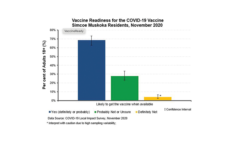 A survey has found that 28 per cent of adults in the Simcoe Muskoka region said they would probably not get the vaccine, or were unsure whether they would get the vaccine.