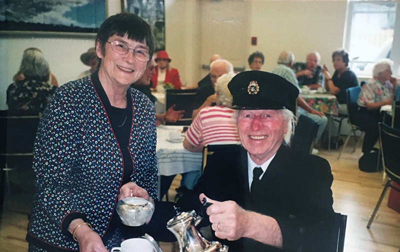 Photo courtesy of Station on the Green archives: Station-on-the-Green designer Michael Clifford with wife Karin at high tea on opening day.