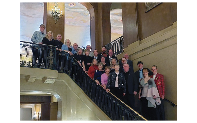 Contributed photo: Twenty-three curlers from Creemore and area posed for a picture on the grand staircase of the Hotel Chateau Frontenac lead by president of the bonspiel Gord Fuller (far right).