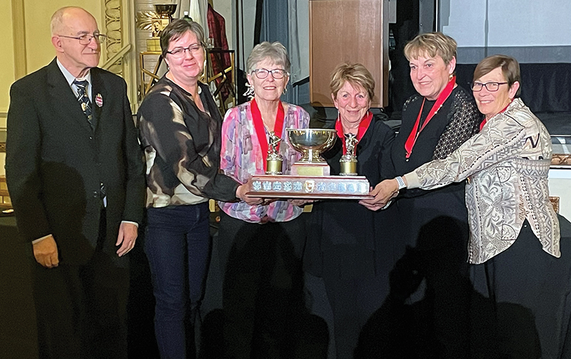 Creemore Curling Club’s ladies team won at the Quebec International Bonspiel Jan. 20-24. These ladies are the first all women curling team to win an event at the bonspiel. The ladies team is made up of Judith Crawford, skip (from second left); Gayle Millsap, vice; Marie Stephenson, co-lead; Ann Huskinson, second; and co-lead Nancy Keith.