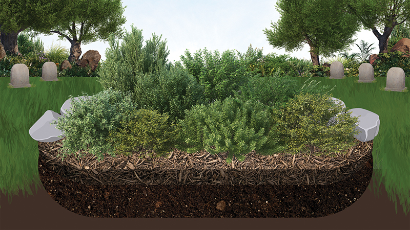 “A 50-square-foot area can accommodate six casket burials or a scatter garden capable of absorbing 63 ash scatterings,” said Kelly.