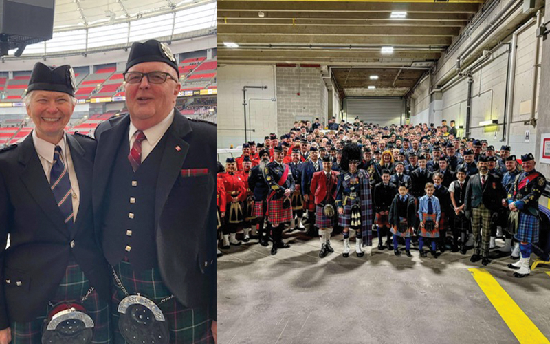Dan Greer and Pipe Major Sheila Stewart, of the Beinn Gorm Highlanders, joined 350 other pipers and drummers to form the largest massed band assembled in Canada to play at the opening ceremonies of The Invictus Games at B.C. Place Stadium in Vancouver on Feb. 8.