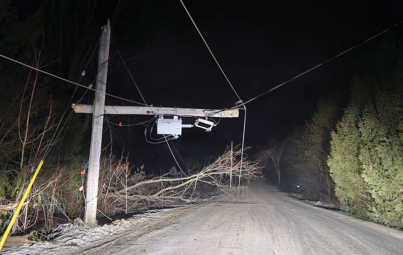 Local residents woke up to power outages Sunday morning following an ice storm that hit the region. Freezing rain caused substantial damage to trees, power lines, and infrastructure. High winds continued throughout the night into the early morning hours of March 31, exacerbating the damage, followed by more freezing rain on Wednesday.