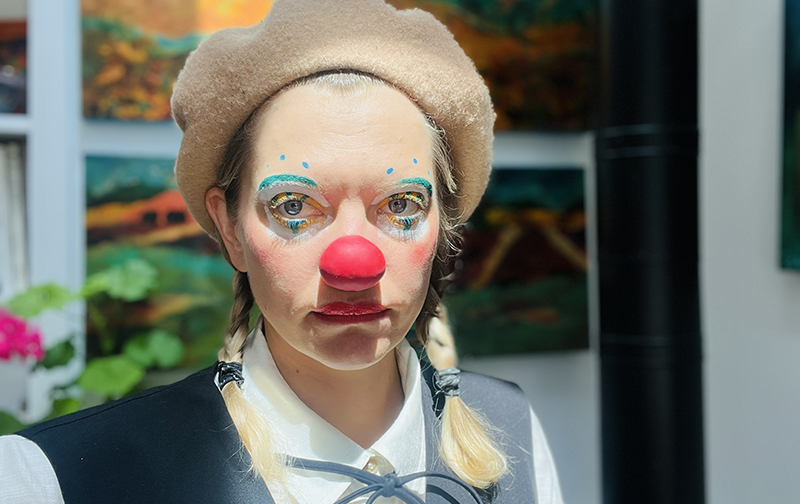 Phillips said she has always loved physical theatre. While at school she created a melancholy clown character having an existential crisis. Two years ago, she got a clown coach in preparation for a television role playing a woman who lives as her clown. As part of her process, she went to the fall fair as a clown.