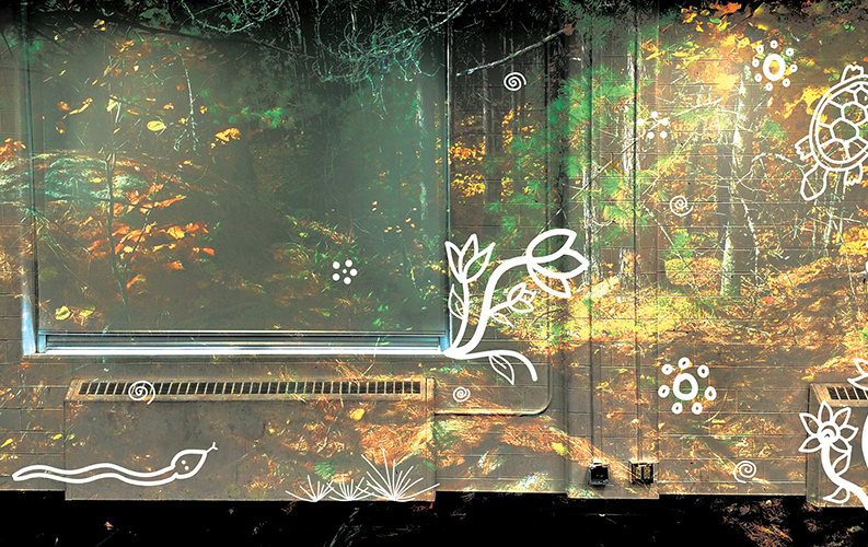 She works largely in the theatre world, creating immersive sets for performances. She is both the artist and the technician. She said it will take her a full day to set up the Creemore show, using four projectors mapped together and lots of ambient sound.