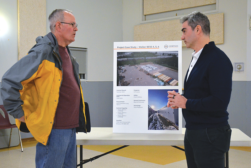 Only about a dozen people attended a public meeting in Stayner Tuesday about a battery energy storage system (BESS) proposal by Compass Greenfield Development.