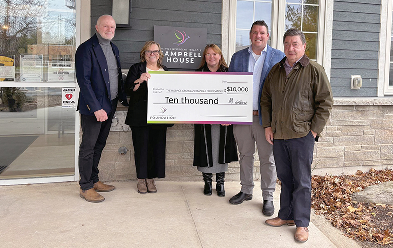 From left: Hospice Georgian Triangle Foundation Board chair Blaine Bell, Hospice Georgian Triangle CEO Trish Rawn, Hospice Georgian Triangle Foundation manager of stewardship and development Linda Caron, Seeley and Arnill Construction operations manager Blake Arnill, and president/owner Paul Arnill.