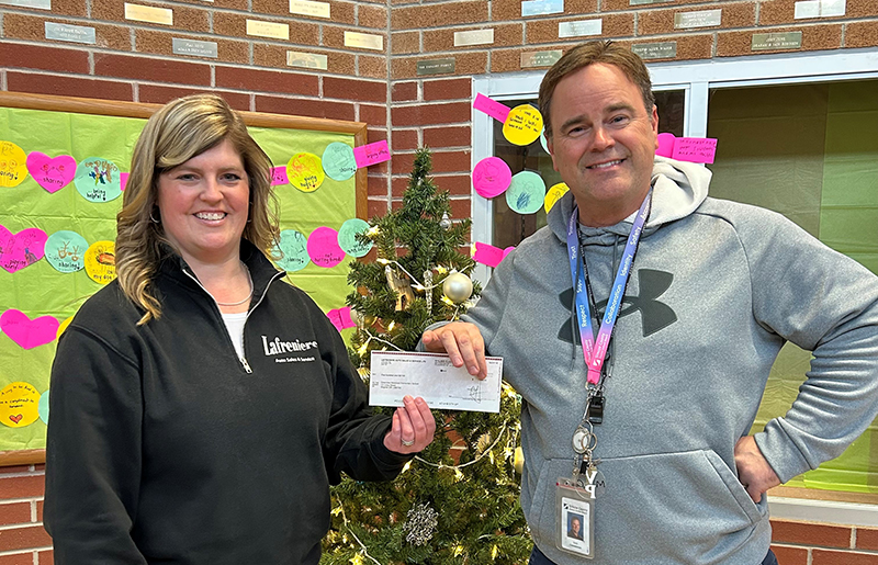 Above: Kim Wyant from Lafreniere Auto Sales & Service with Todd Casselman of the Clearview Meadows Elementary School.