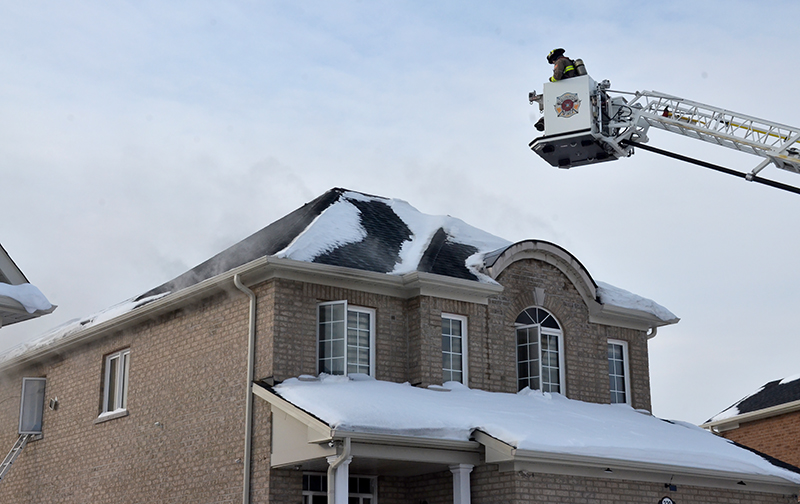 At one point Collingwood firefighters used their aerial truck to inspect the roof to see if the fire had breached the structure, which it had not.