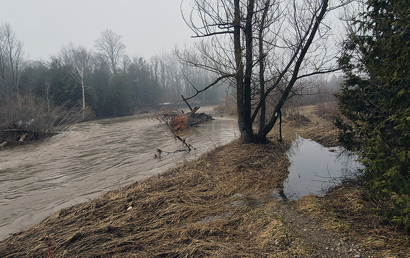 Last year, the NVCA undertook a bank stabilization project in the park including construction of a side channel to handle excess flow. About 10 metres of the 80-metre bank stabilization project washed away in this year’s runoff, but according to Don Little, NVCA manager of stewardship and restoration services, the remaining 70 feet fared quite well.