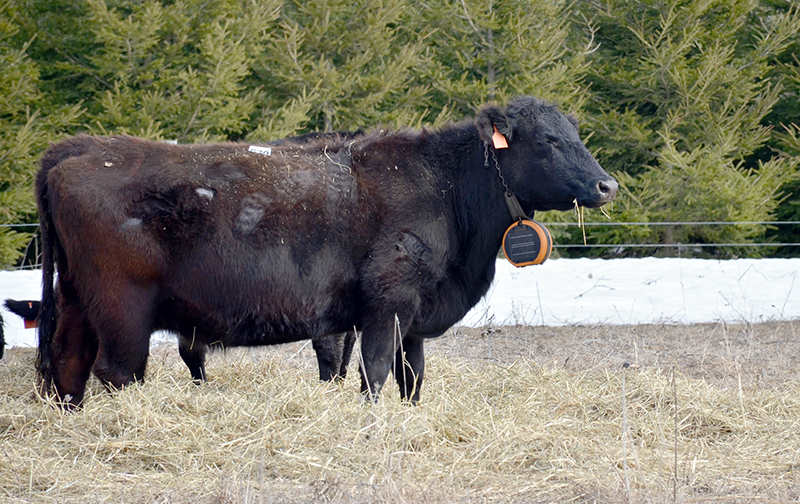 Trina Berlo photo: The New Farm Centre’s herd of Black Angus is wearing e-collars to control grazing.